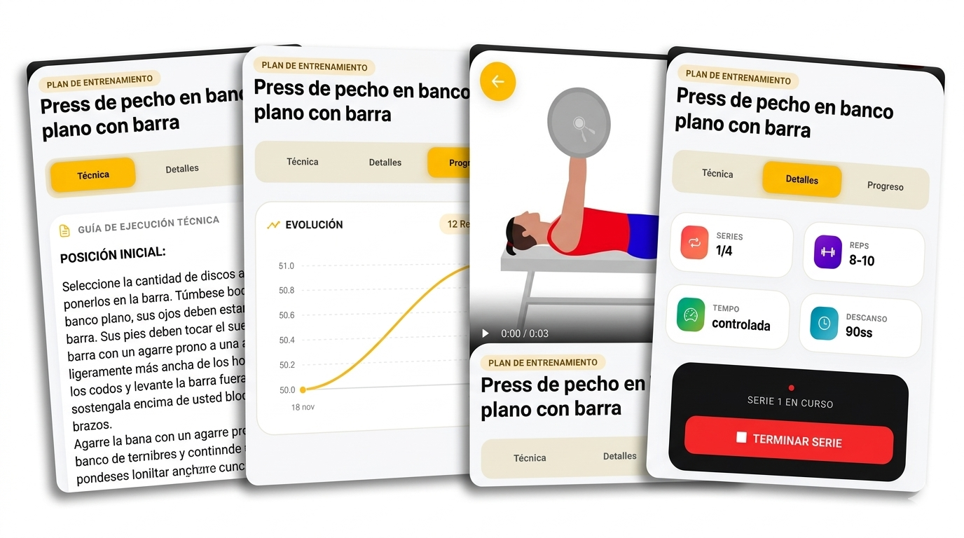 Construye fuerza y músculo real con una estructura clara y un progreso semanal que puedes ver y sentir.